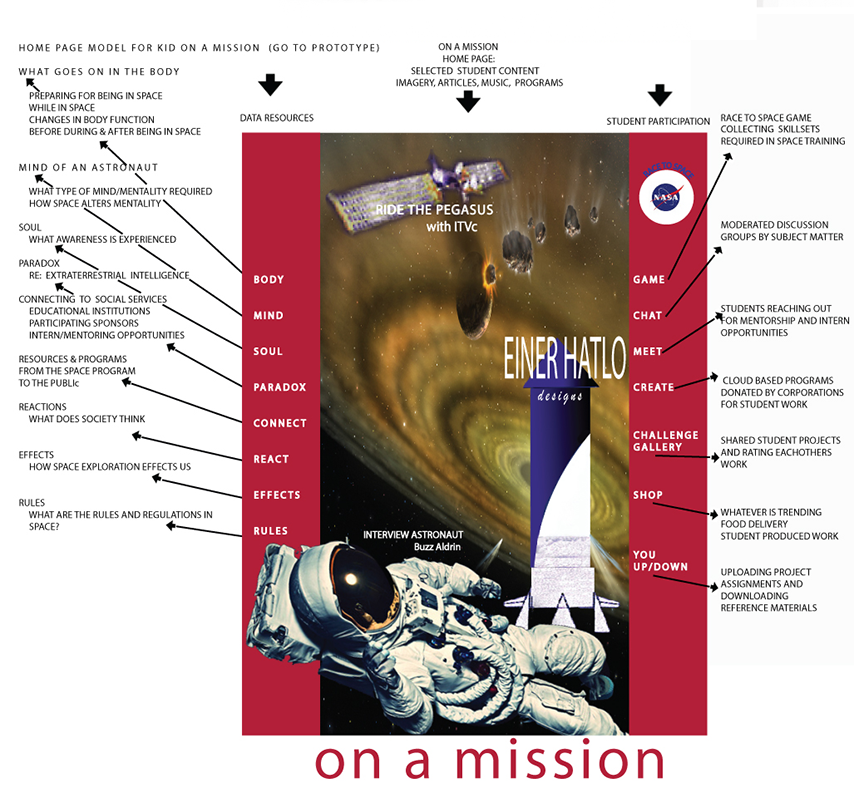 See below: Youtopias original 'mission' and 'bottle' chapters/ samples of user interfaces: On a Mission displays work from students at SF Academy of the Arts, and In a Bottle imagery is modified advertising, fostered by the vendors so that students will reflect further on the issues of alcohol use when seeing original imagery out in the world. And providing greater awareness of their place 'in it' Youtopia builds self-esteem by creating dynamic relationships between kids, teachers and their universe. Join us, leverage student projects and your curriculum in this cosmology. SAMPLE CHAPTERS: |